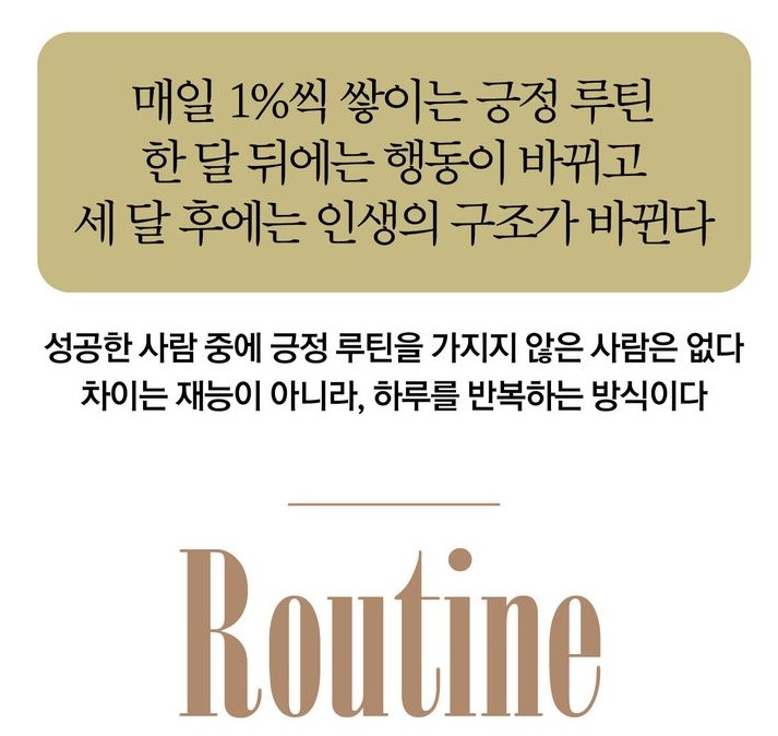 "성공해서 루틴이 생기는게 아니라,루틴이 그들을 성공으로 이끌었다"고 말이죠.