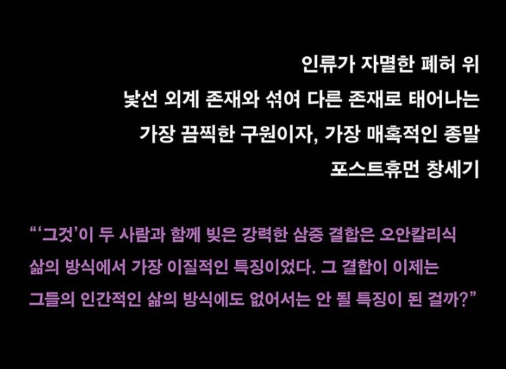 💬 한 줄 평 "단순한 SF를 넘어, 우리가 인간임을 포기하고 무엇이 될 수 있는지를 묻는 장엄한 인류학 보고서"